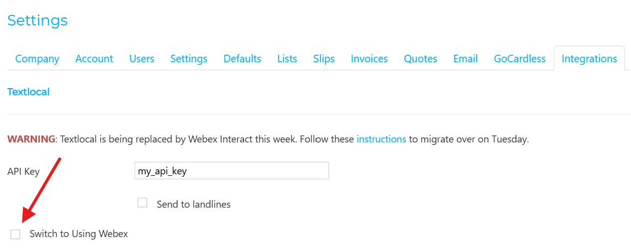 - NOTE: If you migrated your Textlocal account into Webex, follow the instructions here instead!