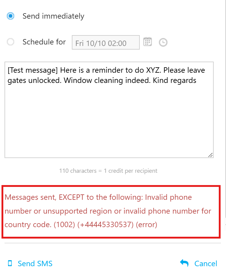 Showing invalid mobile numbers: When you send to a group of contacts, Textlocal would sometimes silently fail invalid numbers — whereas Webex will correctly report exactly which ones succeeded or failed. You will see an error message for only the mobile numbers that failed