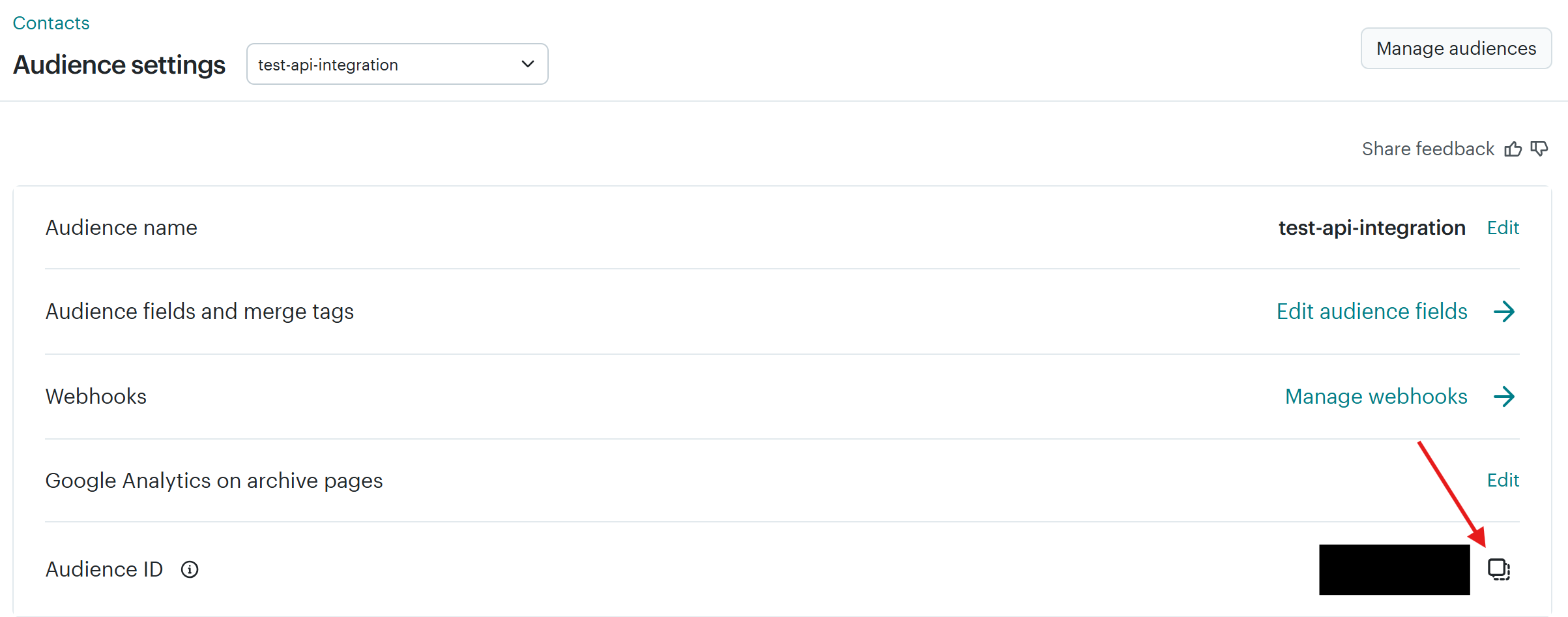 Click the copy-clipboard button next to the Audience ID: