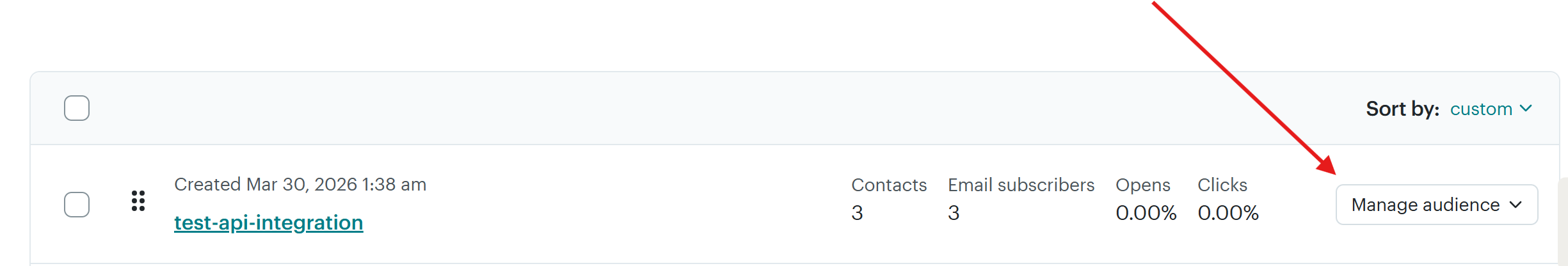 When an audience has been created, click the "Manage Audience" dropdown on the right side > then "Audience Settings":